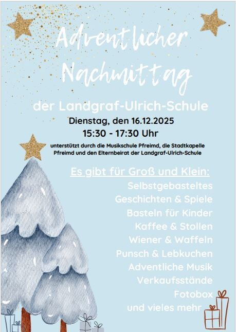 wir möchten Sie ganz herzlich zu unserem adventlichen Nachmittag an der Landgraf-Ulrich-Schule einladen!