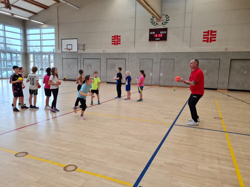 Im Putzerspiel wurden Angriff und Verteidigung simuliert, „Kopf, Bauch, Beine, Ball“ diente der Reaktionsschulung, „Ball-Tauziehen“ der Armkräftigung und auch für das Passen und zielgenaue Werfen ließen sich die passionierten Handballtrainer kindgerechte Übungen einfallen.