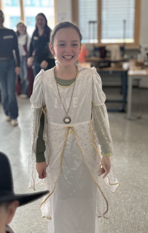 Im Anschluss an die Aufführung konnten unsere Schülerinnen und Schüler selbst aktiv werden. In verschiedenen Workshops hatten sie die Möglichkeit, sich kreativ mit dem Thema Märchen auseinanderzusetzen. Dabei wurden unter anderem Stop-Motion-Filme erstellt, Tiermasken gebastelt und mit Kostümen eigene Märchenszenen dargestellt.
